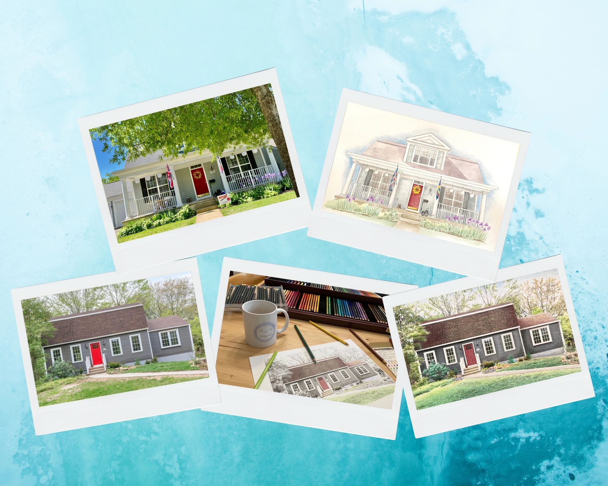 Original art of your home! I love to work in multiple mediums and can work with you to commission a piece. As a military spouse, I enjoy creating memories of PCS locations for families. Choose from pen & ink with watercolor OR black & white photo with hand done color overlay.